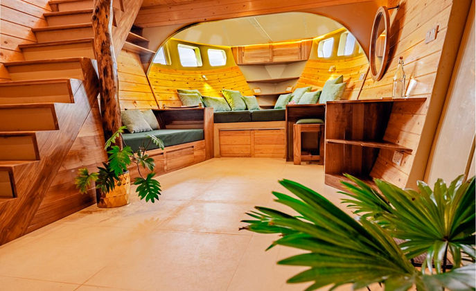 Designed for travelers seeking something truly extraordinary, this exclusive accommodation offers the magic of staying aboard a beautifully crafted boat, set directly on the beach with uninterrupted views of the endless blue horizon. Every moment here is framed by nature — golden sands beneath your feet, swaying palms behind you, and the sea stretching endlessly before you.
